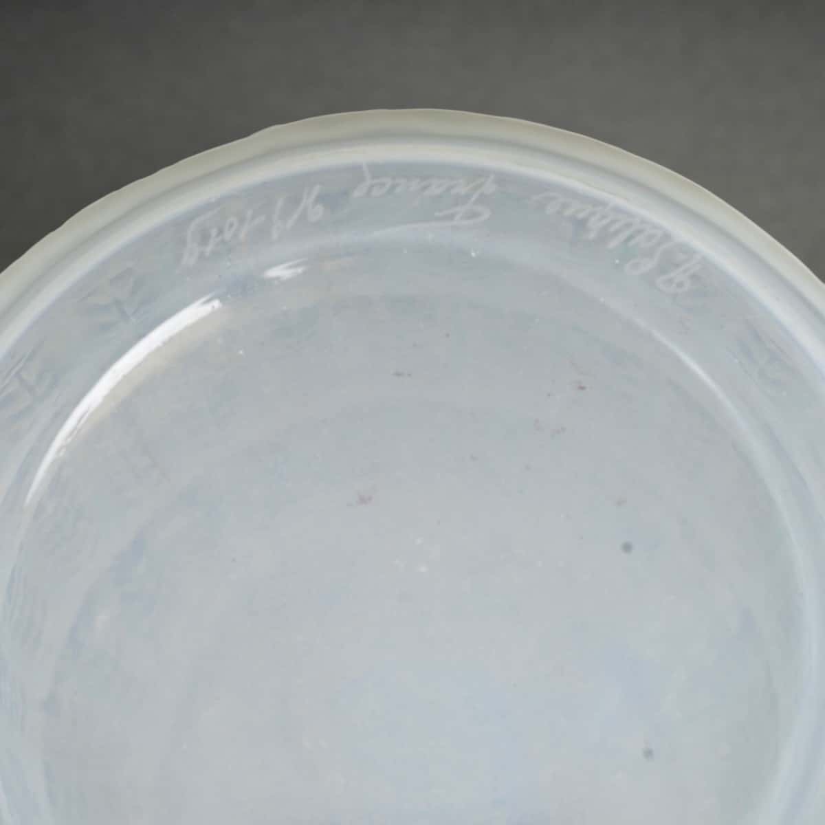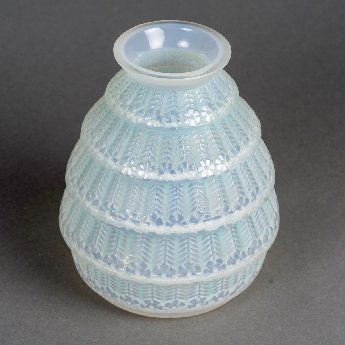 Vase « Ferrières » en verre opalescent double couche patiné vert de René Lalique créé en 1929.