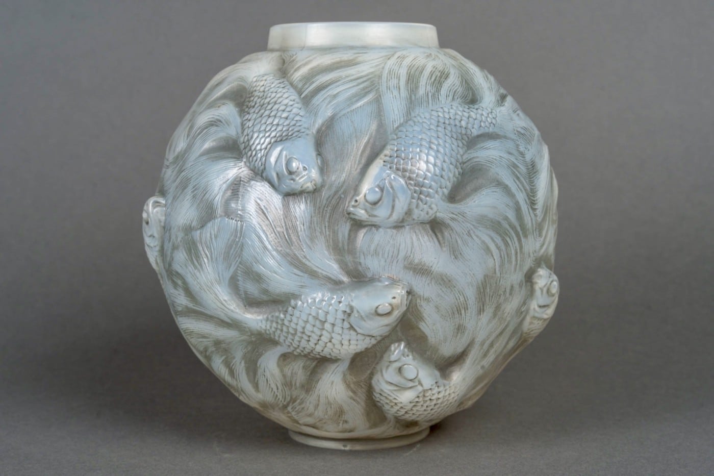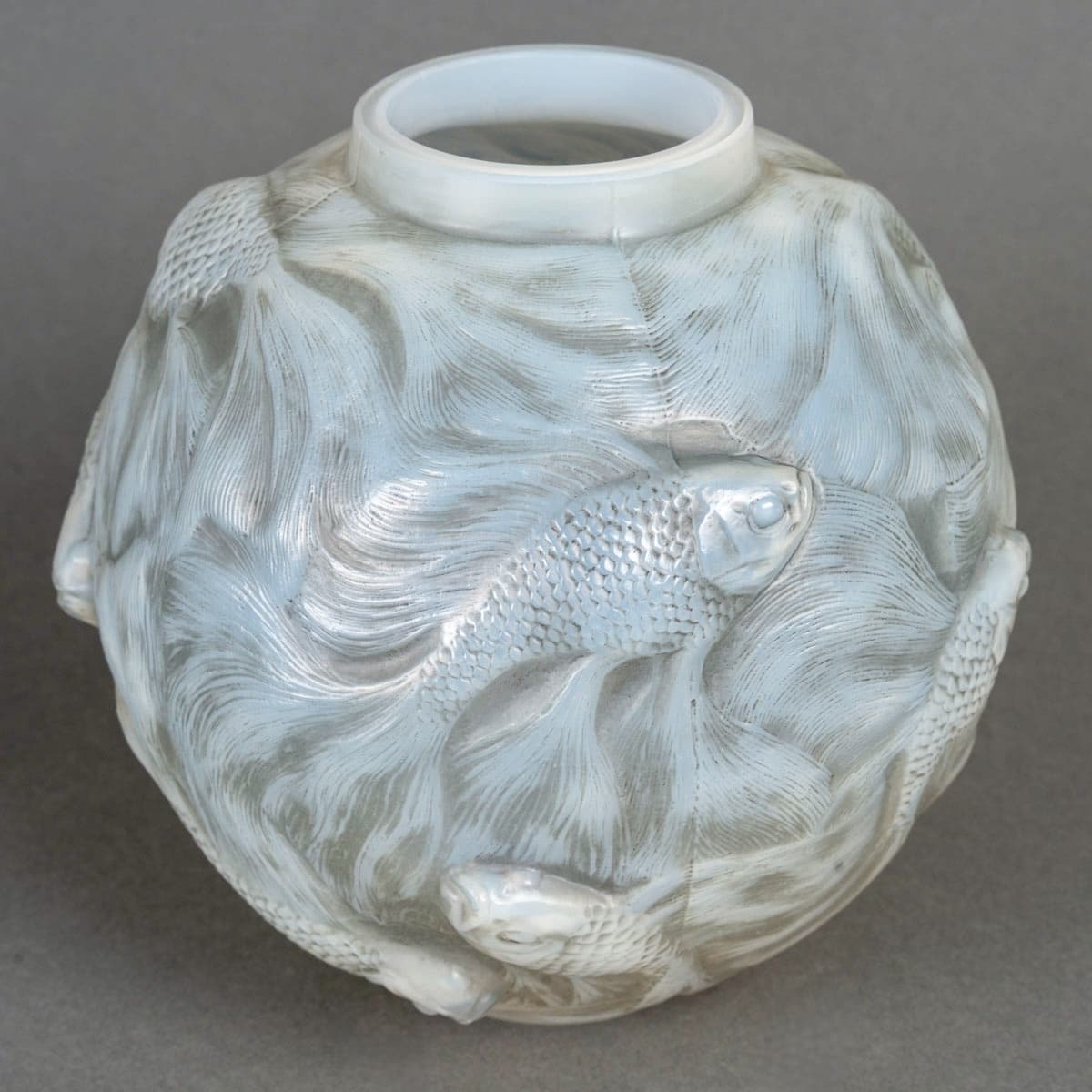 Vase « Formose » en verre opalescent multicouche patiné gris de René Lalique créé en 1924.