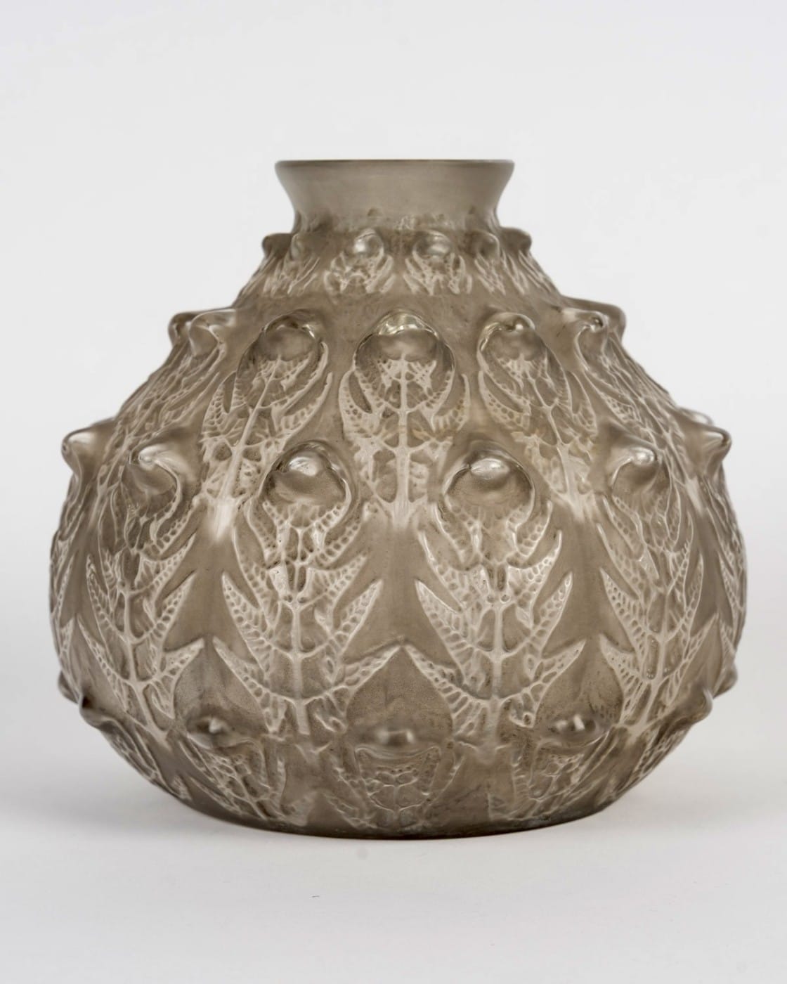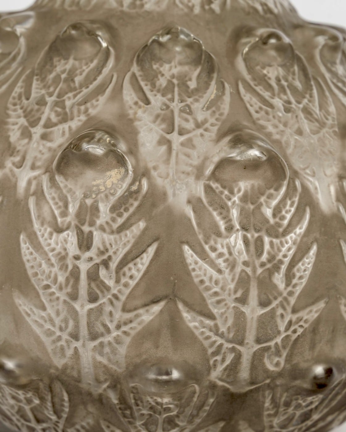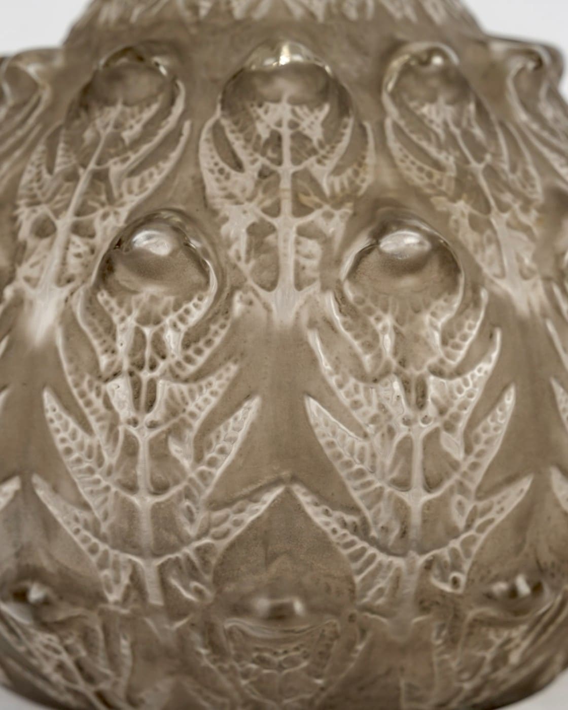 Vase « Fougères » en verre blanc patiné gris de René Lalique créé en 1912.