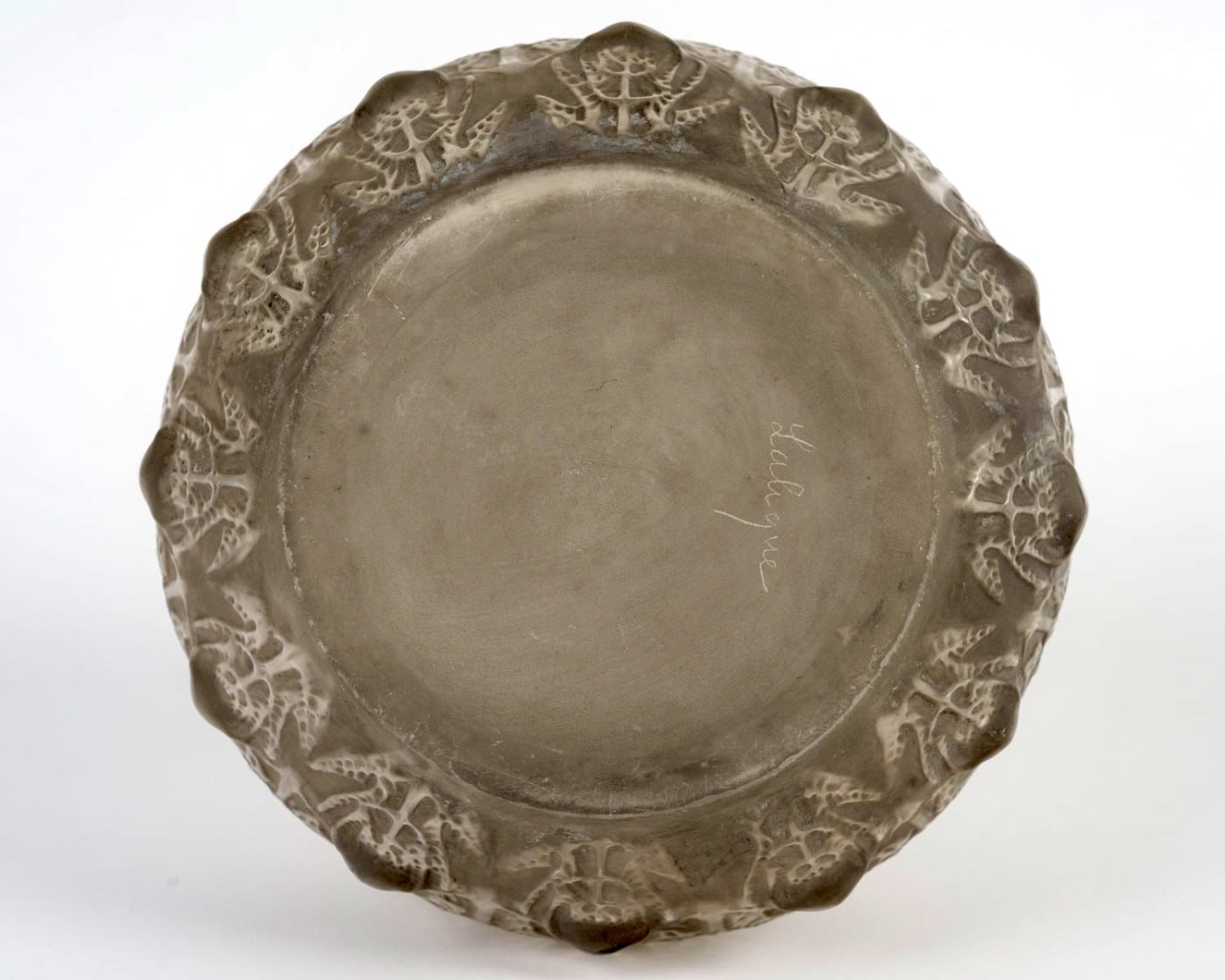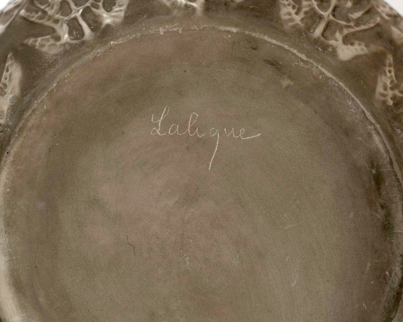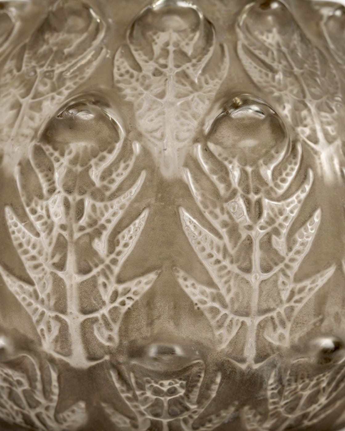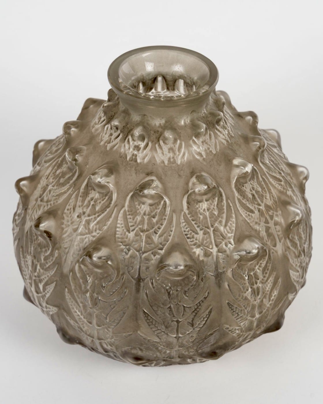 Vase « Fougères » en verre blanc patiné gris de René Lalique créé en 1912.