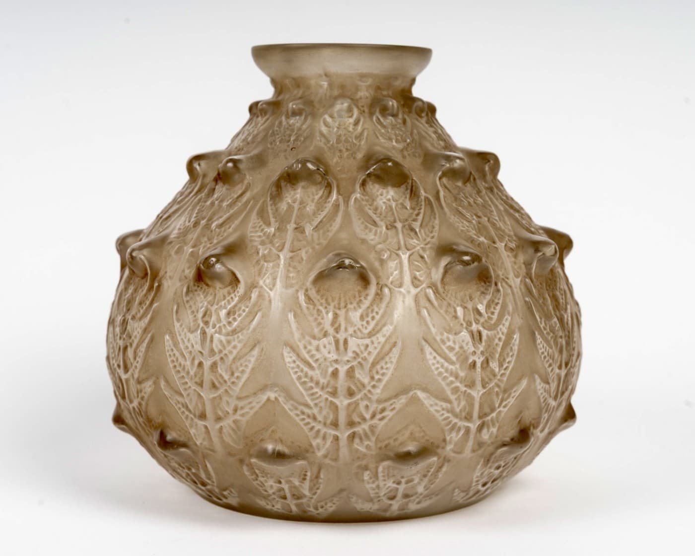 Vase « Fougères » en verre blanc patiné sépia de René Lalique créé en 1912.