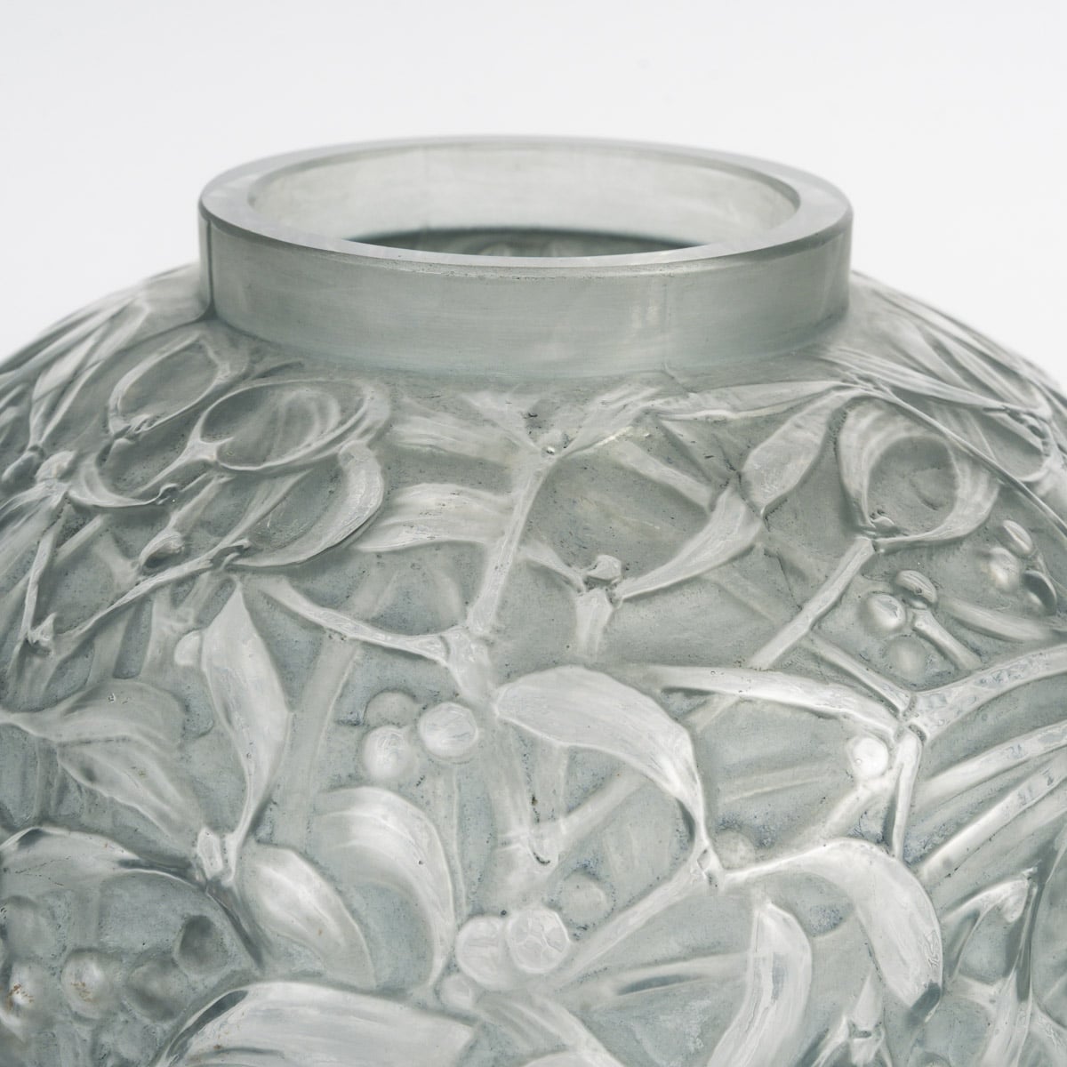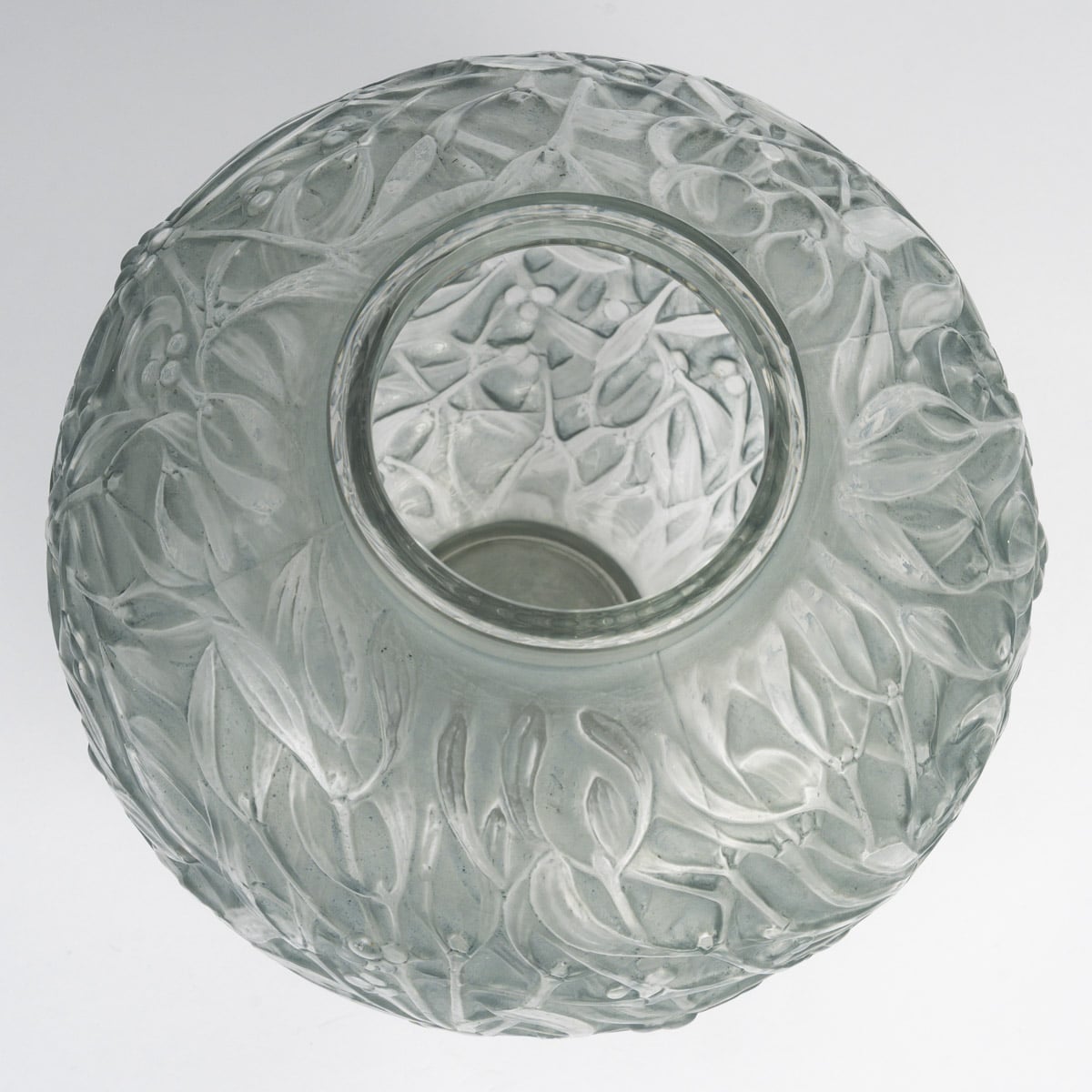 Vase « Gui » en verre blanc patiné bleu de René Lalique créé en 1920.