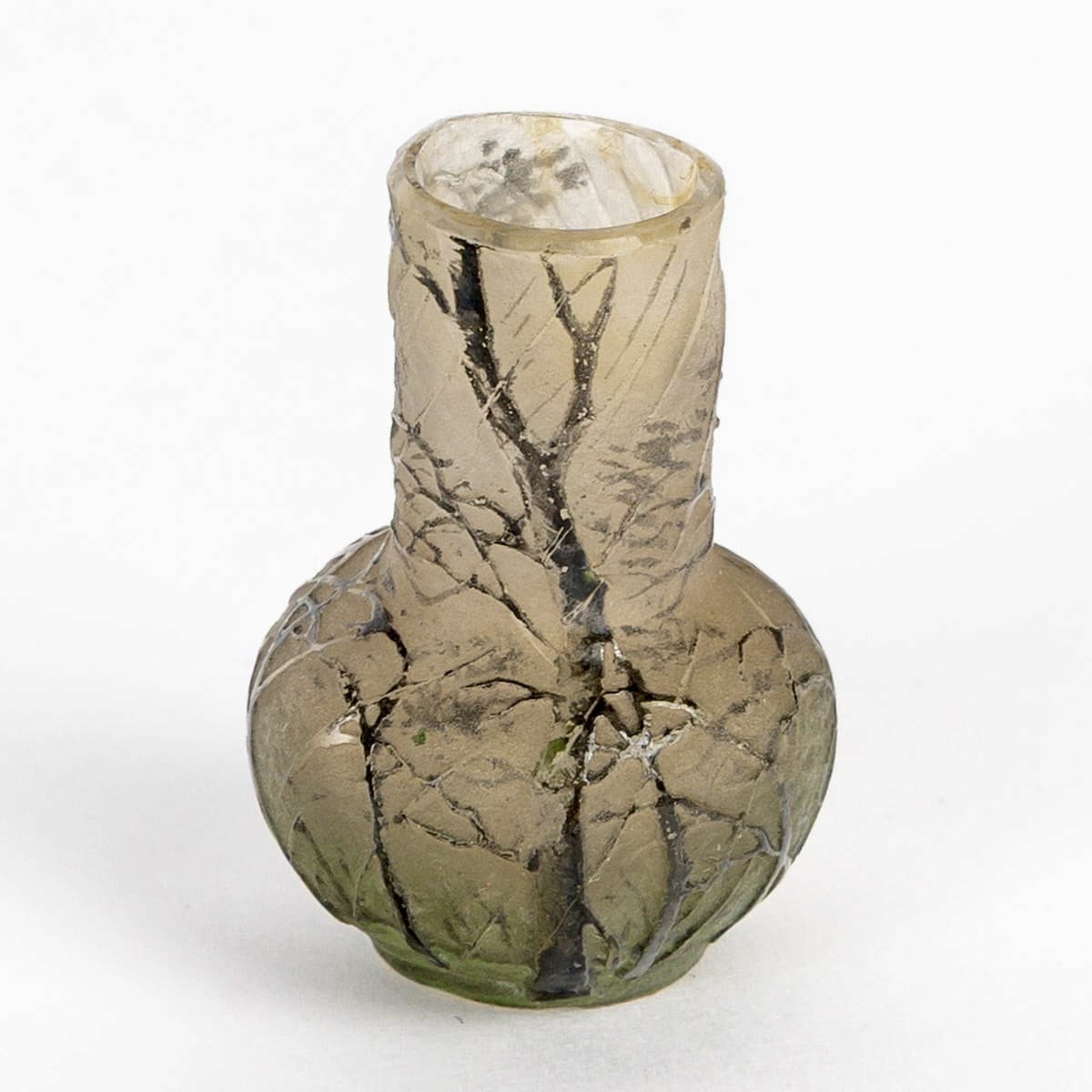 Vase Miniature « A la Pluie » en verre dégagé à l’acide et émaillé créé par Daum Nancy vers 1900.