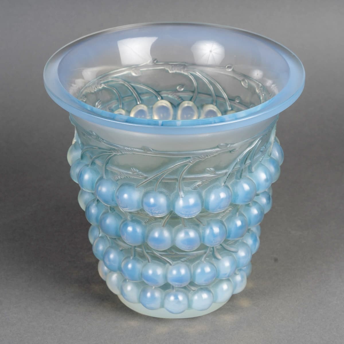 Vase « Montmorency » en verre opalescent patiné bleu de René Lalique créé en 1930.
