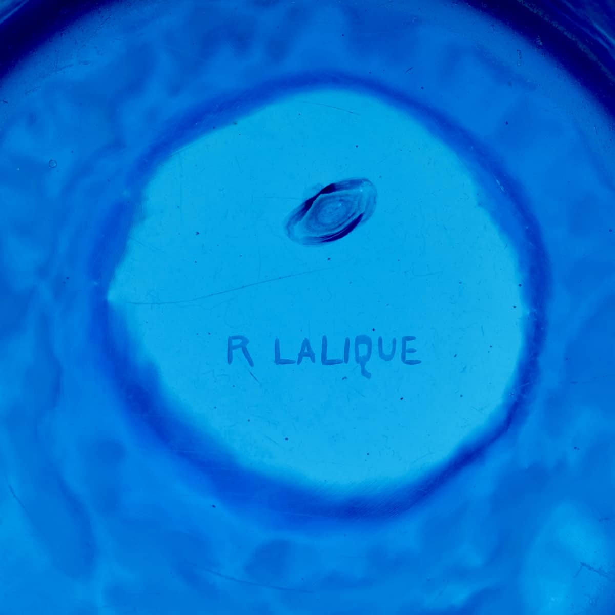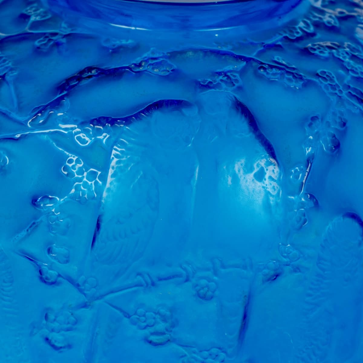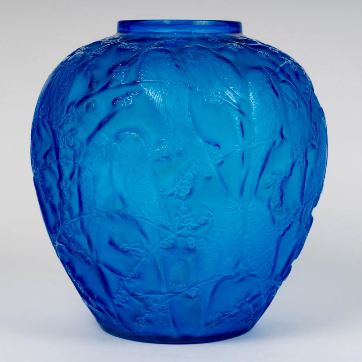 Vase « Perruches » en verre bleu électrique créé par René Lalique en 1919.
