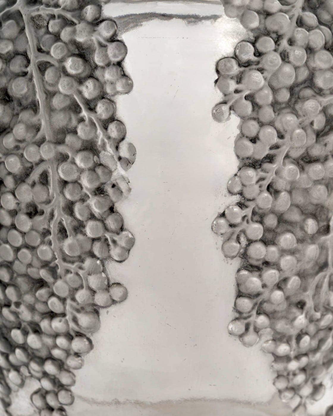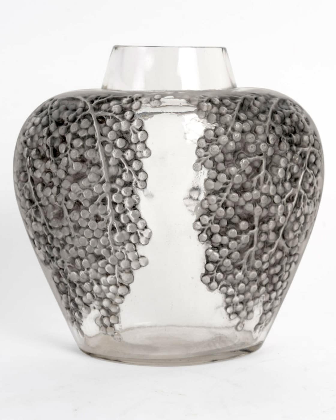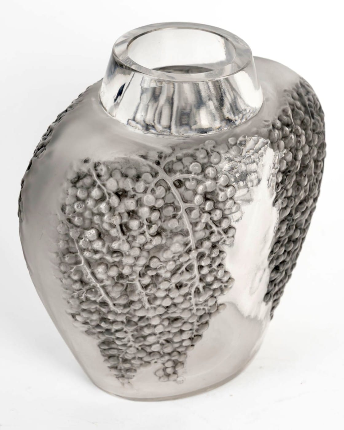 Vase « Poivre » en verre blanc patiné bleu de René Lalique créé en 1921.