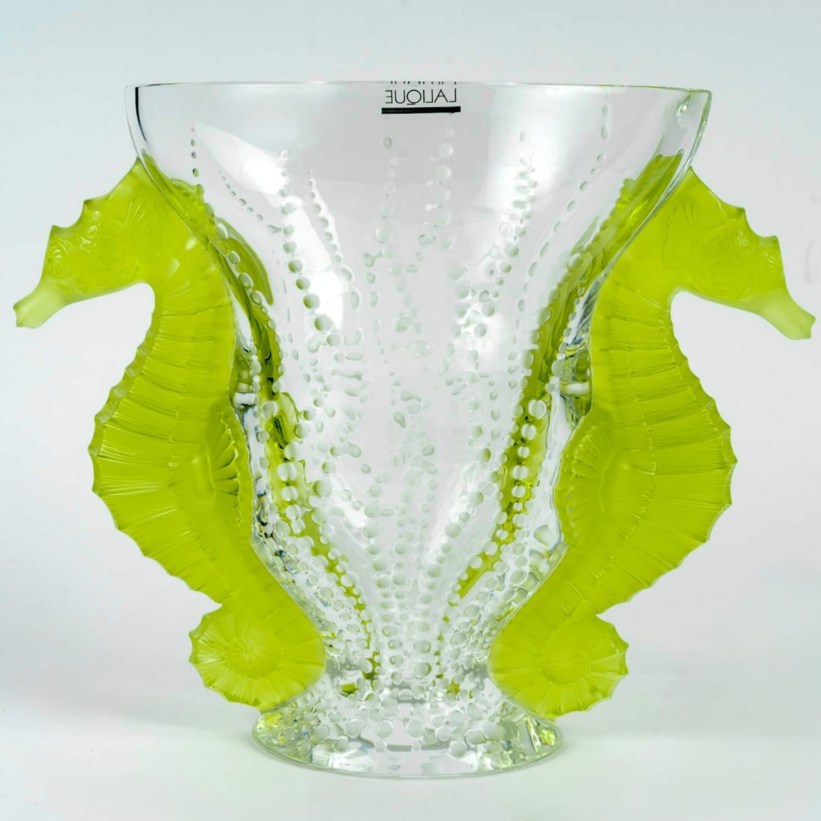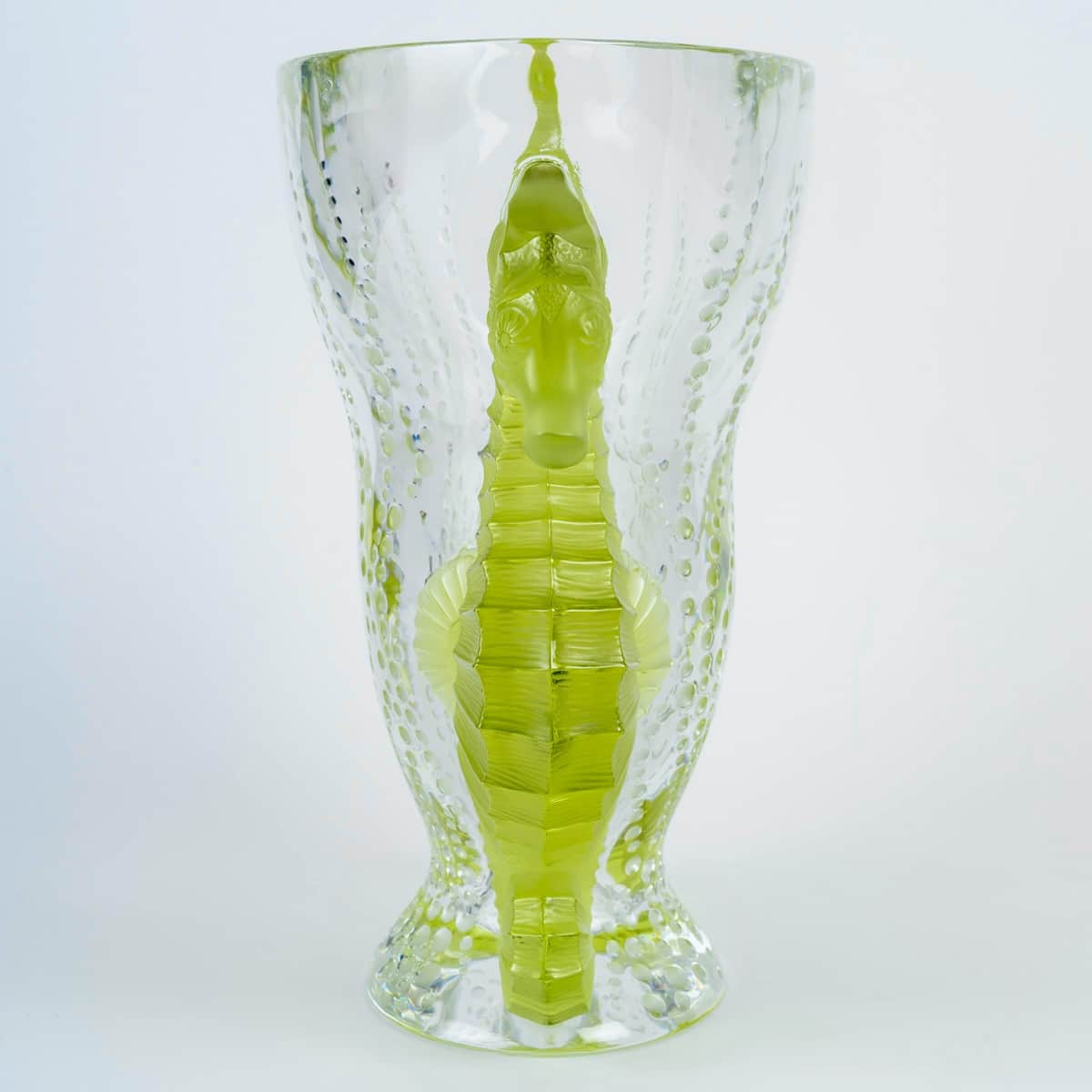 Vase « Poséidon » en cristal blanc et vert absinthe de Lalique France créé en 2008.