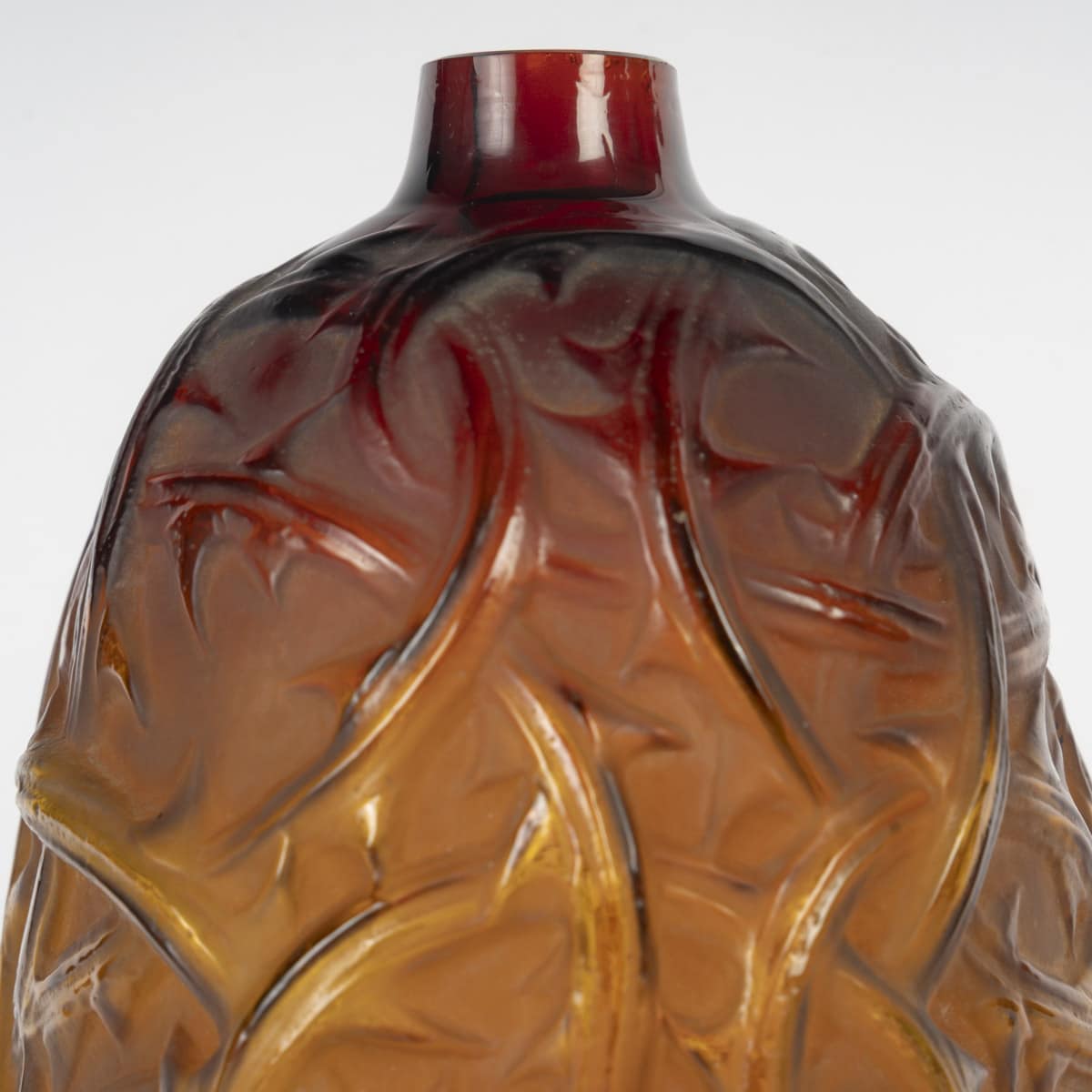 Vase « Ronces » en verre ambre orangé créé par René Lalique en 1921.