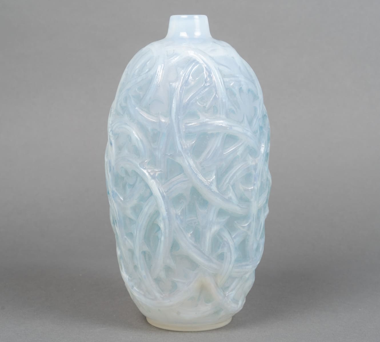 Vase « Ronces » en verre opalescent multicouche patiné bleu créé par René Lalique en 1921.