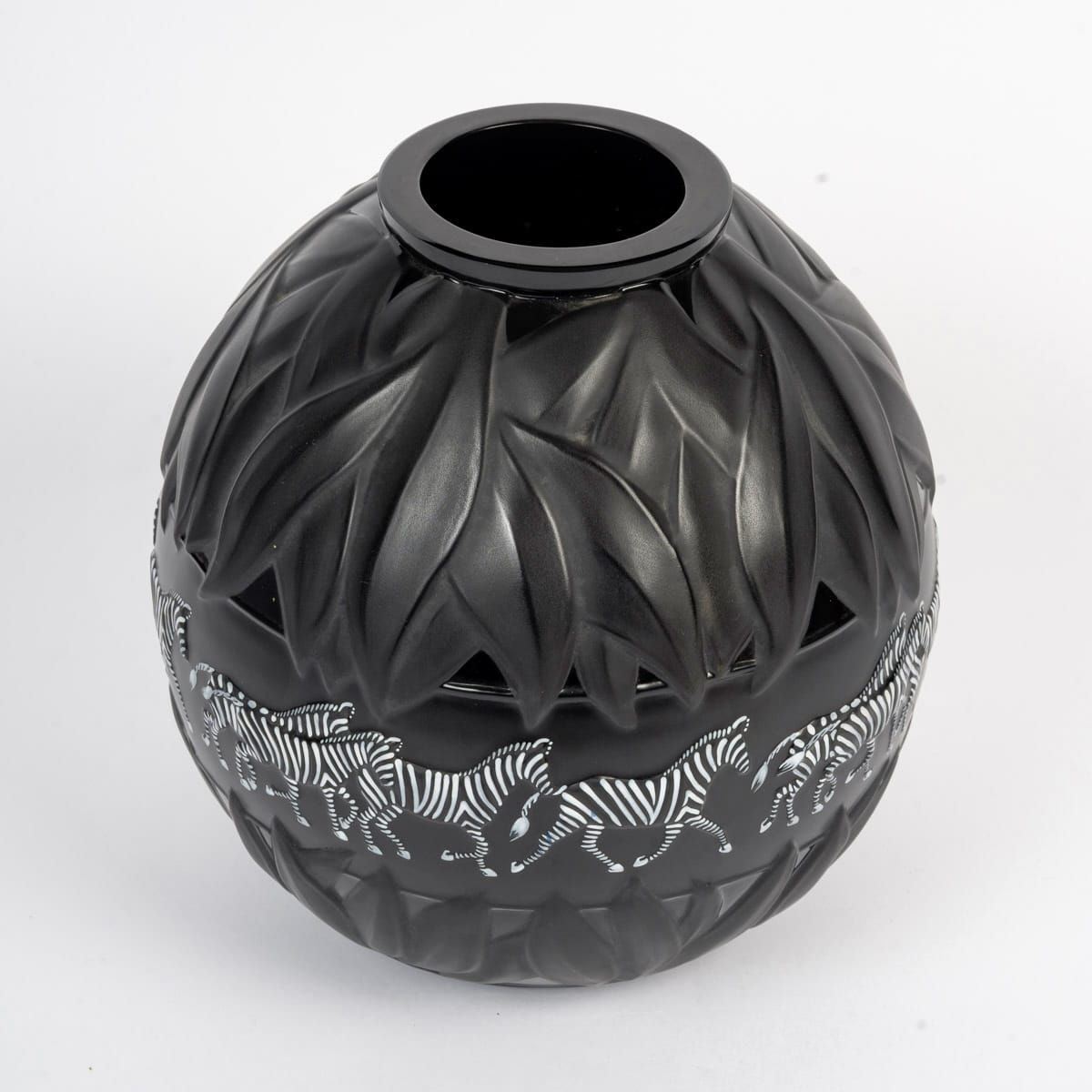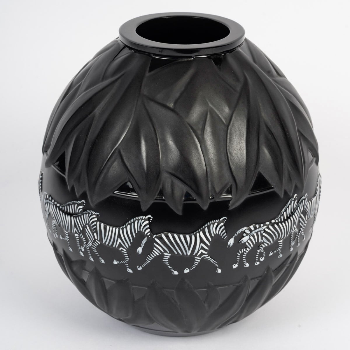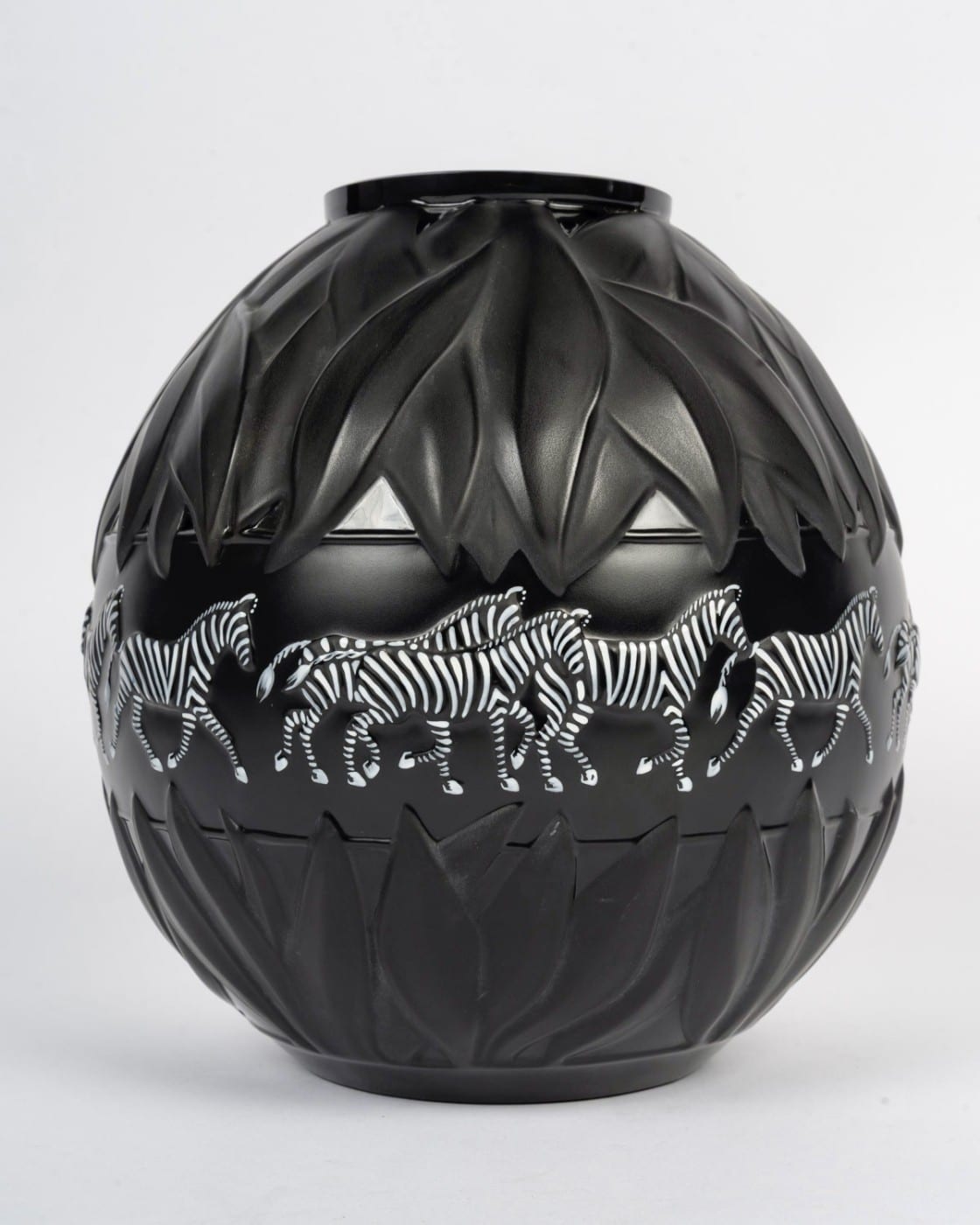Vase « Tanzania » en cristal noir émaillé blanc créé par Marie-Claude Lalique.