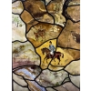 Vitrail représentant des cavaliers chinois évoluant dans un paysage montagneux.