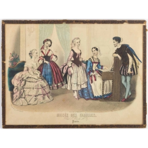 Gravure du 19e siècle sous verre représentant une élégante